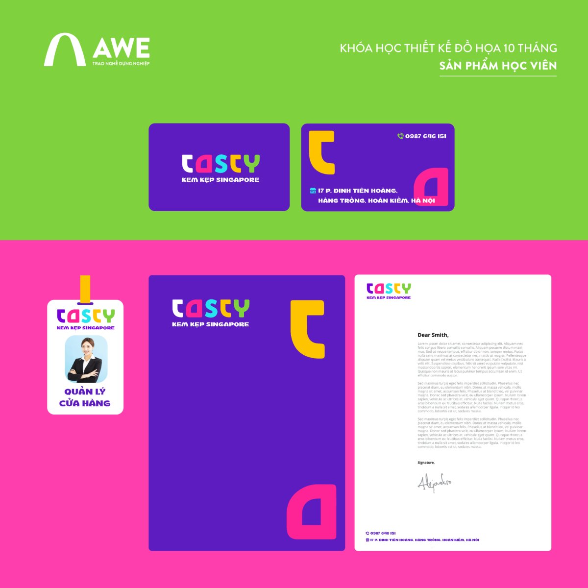 Trong khuôn khổ môn học Thiết kế nhận diện thương hiệu, học viên Lê Ngọc Ánh đã thực hiện dự án thiết kế lại bộ nhận diện cho một thương hiệu kem nhượng quyền có định vị trẻ trung và khác biệt.